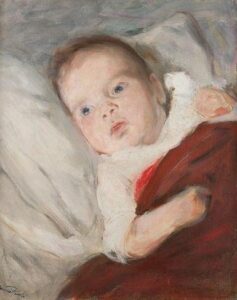 Lukisan “Keluarga di Bawah Lampu Meja” menggambarkan sang ibunda (Pauline), kakak perempuan (Betty), dan satu kerabat pria yang sedang duduk bersama diterangi cahaya lampu minyak tanah (parafin). Lukisan tersebut adalah tugas akhirnya di Akademi Seni Rupa Swedia, yang kemudian lolos seleksi untuk dipamerkan dalam pameran 150 tahun berdirinya Akademi. Dalam pameran, lukisan tersebut memperoleh penghargaan kedua, medali Hertigliga. Penghargaan itu menjadi bukti pengakuan atas bakatnya.